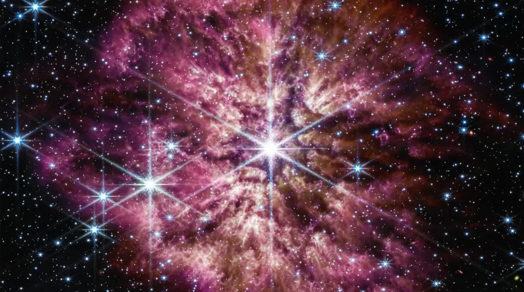 A imagem de uma estrela Wolf-Rayet, 30 vezes maior que o nosso Sol, chamada WR 124 na constelação de Sagitário, foi capturada pelo telescópio espacial James Webb a 15.000 anos-luz da Terra.