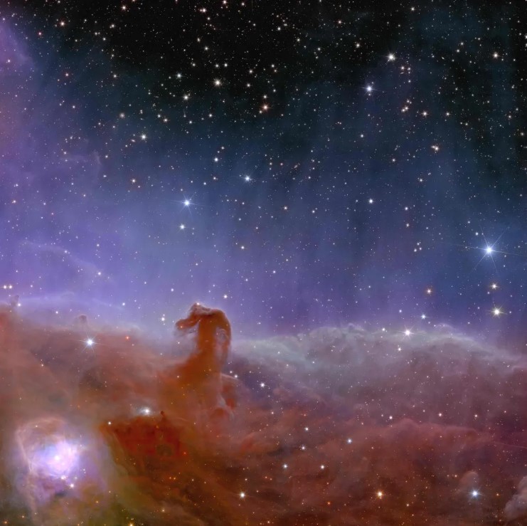 O telescópio Euclid capturou a Nebulosa Cabeça de Cavalo em uma visão panorâmica e detalhada. A nuvem de poeira e gases faz parte da constelação de Órion.
