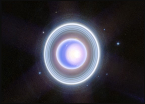 Na década de 1980, por conta dos comprimentos de onda captados pela sonda da Nasa Voyager 2, a imagem difundida de Urano era a de uma bola azul sólida. Agora, como o Webb consegue capturar comprimentos de onda infravermelhos, ele revelou um universo complexo de coisas em volta do planeta.