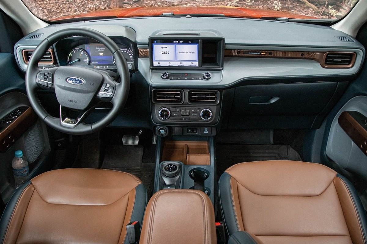 Em vista do preço cobrado, entretanto, a Ford Maverick Hybrid deveria entregar mais equipamentos. Afinal, a caminhonete deixa de fora recursos como teto solar, câmeras com visão em 360 graus, controlador de velocidade adaptativo (há só só o convencional) e retrovisor interno eletrocrômico. Porém, os itens que mais fazem falta são os sensores de estacionamento, que não estão presentes nem mesmo na traseira, e os alertas de ponto cego: ambos seriam muito úteis em um veículo grande e com a tal proposta urbana.
