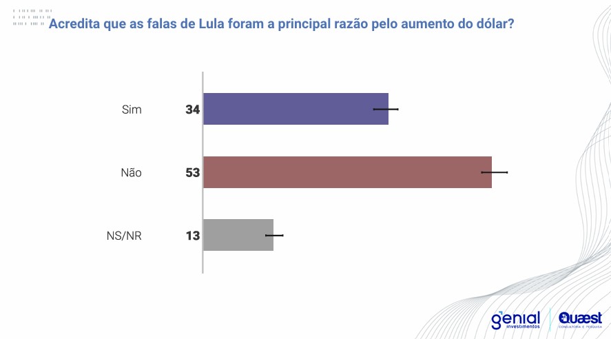 O aumento do dólar não teve relação com as falas do Lula para 53%. Já 34% acreditam que teve relação.