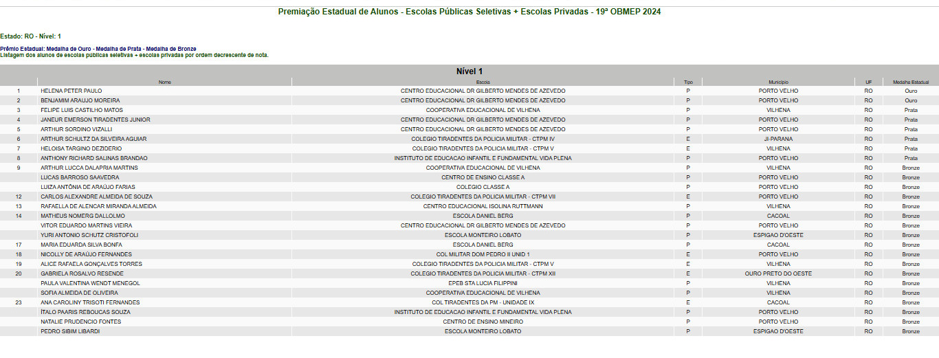 Veja quem são os super alunos de Rondônia na lista de cada um dos três níveis: