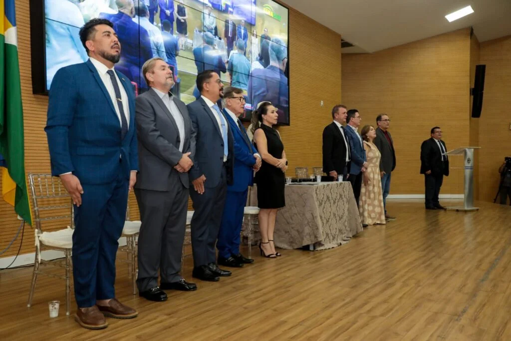 A mesa de honra do evento contou com a presença de figuras de grande relevância. O representante nacional da Federação Nacional dos Comunicadores do Brasil (FENACOM), Fábio Camilo, liderou os trabalhos ao lado de convidados como a Secretária de Comunicação do Governo de Rondônia, Rosângela Castelo, que representou o Governador Coronel Marcos Rocha. Também compuseram a mesa o Presidente da Assembleia Legislativa de Rondônia, Deputado Marcelo Cruz, o Deputado Estadual Luizinho Goebel, e o advogado Nelson Canedo, que representou o Prefeito eleito Léo Moraes.