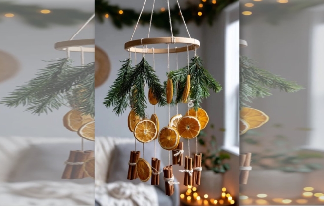 Ervas aromáticas, como alecrim e tomilho, também são ótimas aliadas. Elas podem formar mini buquês, adornar guardanapos, decorar velas ou completar enfeites penduráveis. Para quem deseja algo ainda mais orgânico, é possível usar frutas como laranjas desidratadas clássicas em decorações natalinas em vários países que acrescentam perfume suave e uma estética artesanal muito charmosa. Tudo isso forma uma paleta natural bonita, que conversa bem com madeira, tecidos crus e tons terrosos.