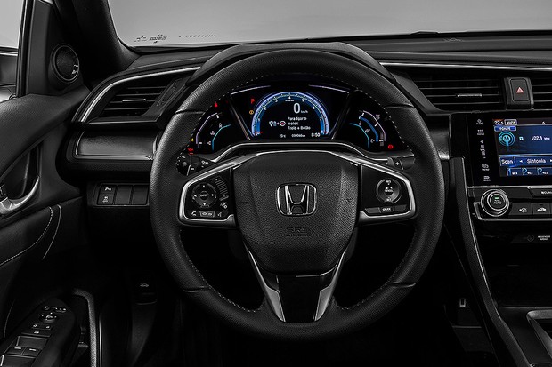 Comparado a concorrência, o Civic já vem bem equipado desde a versão de entrada. Pena a versão não ter bancos de couro e sensores de estacionamento traseiro. Os itens de série são: direção elétrica, trio elétrico, ar-condicionado digital, roda de liga-leve de 17 polegadas diamantadas, controle de tração e estabilidade, assistente de partida em rampa, seis airbags, cinto de segurança de 3 pontos e encosto de cabeça para todos os ocupantes, Isofix, câmera de ré, faróis de neblina, chave tipo canivete, freio de estacionamento eletrônico com função Brake Hold, controle de velocidade de cruzeiro, repetidor de seta, ajuste de altura e profundidade do volante, tela multimídia de 7 polegadas sensível ao toque, DLR e lanternas de LED e volante multifuncional.