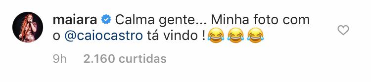 Na imagem, Fernando, Sorocaba e Rafaella estão curtindo a Festa do Peão de Barretos. Na legenda, o cantor escreveu: “De ontem, no Barretão com a nossa amiga querida”. Rapidamente, Maiara comentou: “Calma, gente… Minha foto com o Caio Castro está vindo!”.