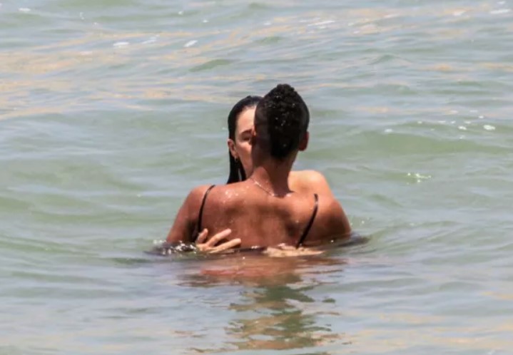 Bruna, porém, foi flagrada em um momento íntimo: ao emergir do mar, acabou deixando os seios à mostra. Ela logo tratou de ajeitar o biquíni e fez pose para os paparazzi.