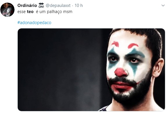 Até Rainer Cadete tirou sarro da estupidez do personagem. “Teo! Era pra mostrar essa foto pra todo mundo, menos para ela”.