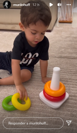 Nos Stories, Murilo impressionou a web ao mostrar Léo falando inglês. O garotinho posou com um brinquedo enquanto falava uma sequência de cores em inglês: vermelho, laranja, amarelo, verde e azul.