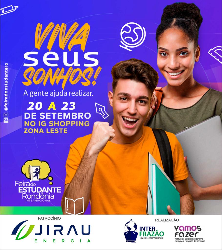 A Feira do Estudante Rondônia Internacional 2022, será realizada no período de 20 a 23 de setembro, no IG Shopping – Zona Leste. O evento é uma excelente oportunidade para os jovens e comunidade em geral, entrarem em contato com instituições de ensino, faculdades, escolas de idiomas, cursos profissionalizantes, palestras com temáticas sobre o mercado de trabalho, recolocação de emprego, realizar testes vocacionais e muito mais. A feira tem a organização da Interfrazão e as inscrições são gratuitas pelo link
