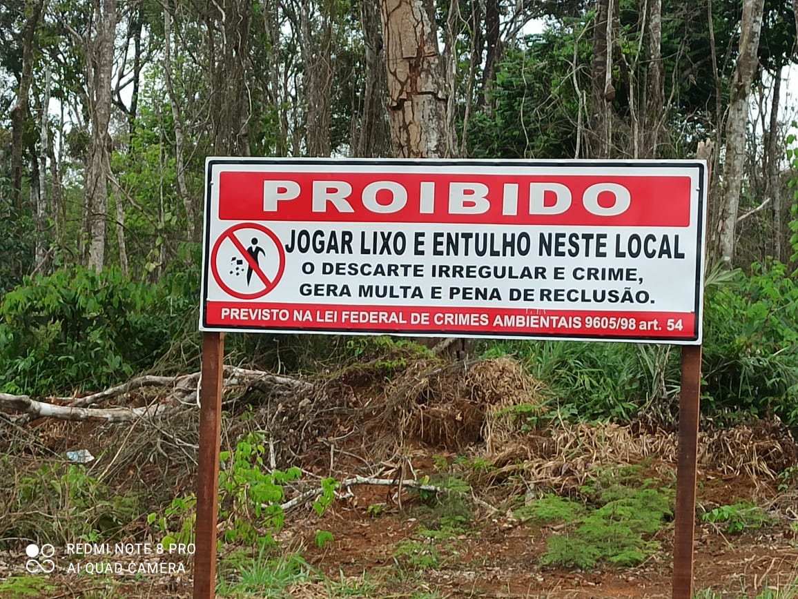 Numa tentativa de parar com o descarte de lixo, a associação de moradores do setor do Recanto da Paz colocou uma grande placa na entrada do local que diz: "Proibido jogar lixo e entulho neste local. O descarte irregular é crime, gera multa e pena de reclusão - Previsto na Lei Federal de Crimes Ambientais 9605/98 Art. 54.”