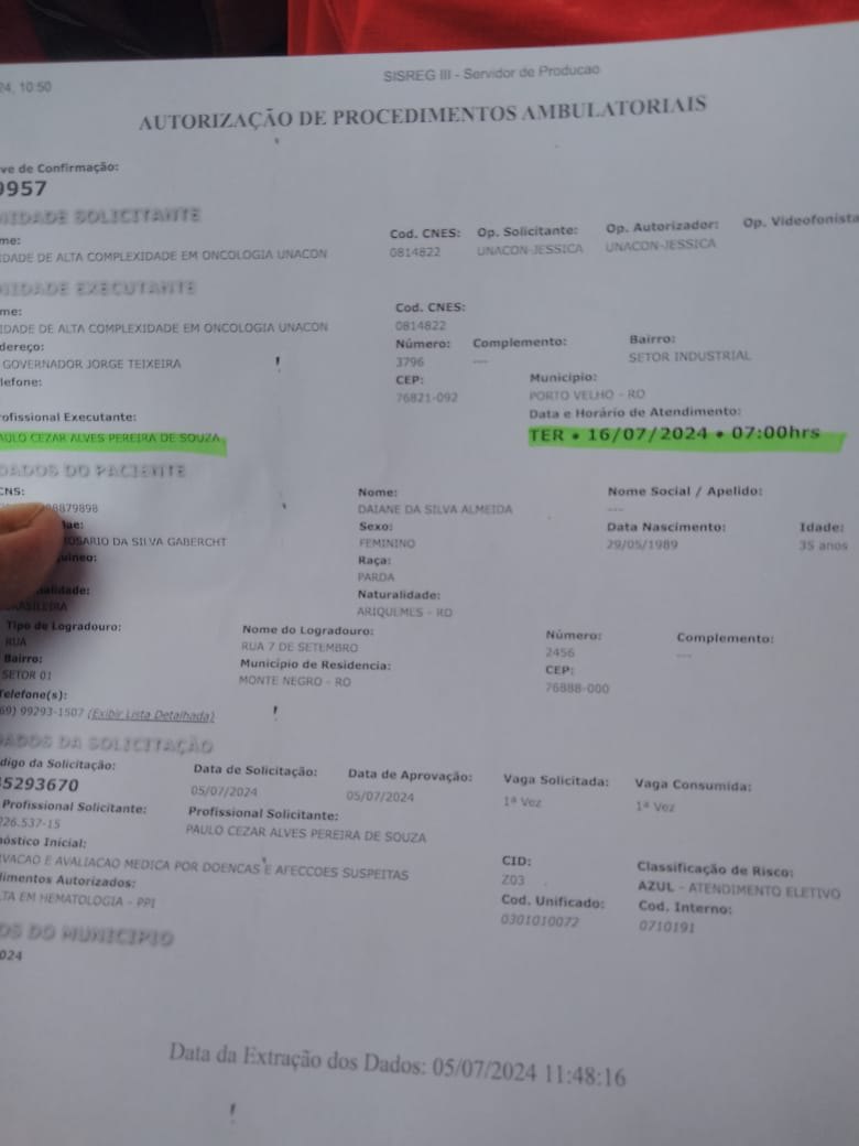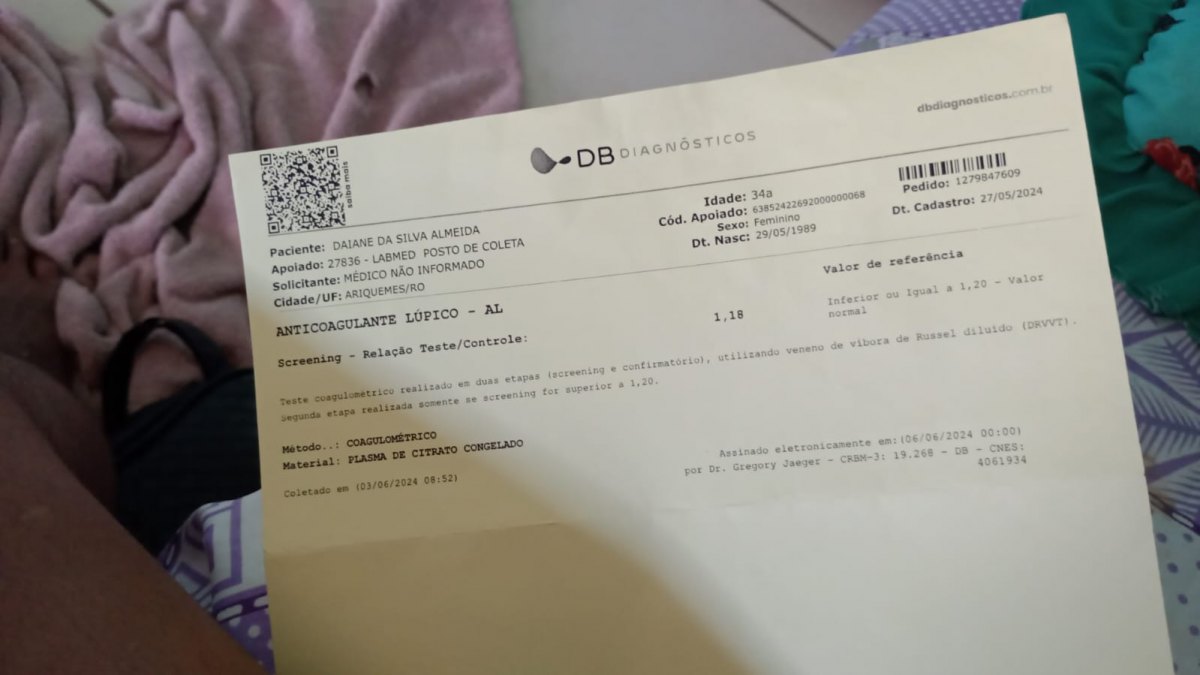 Desta vez, ela necessita fazer uma ressonância magnética do crânio com contraste, que custa 850 reais em uma clínica particular de Porto Velho.