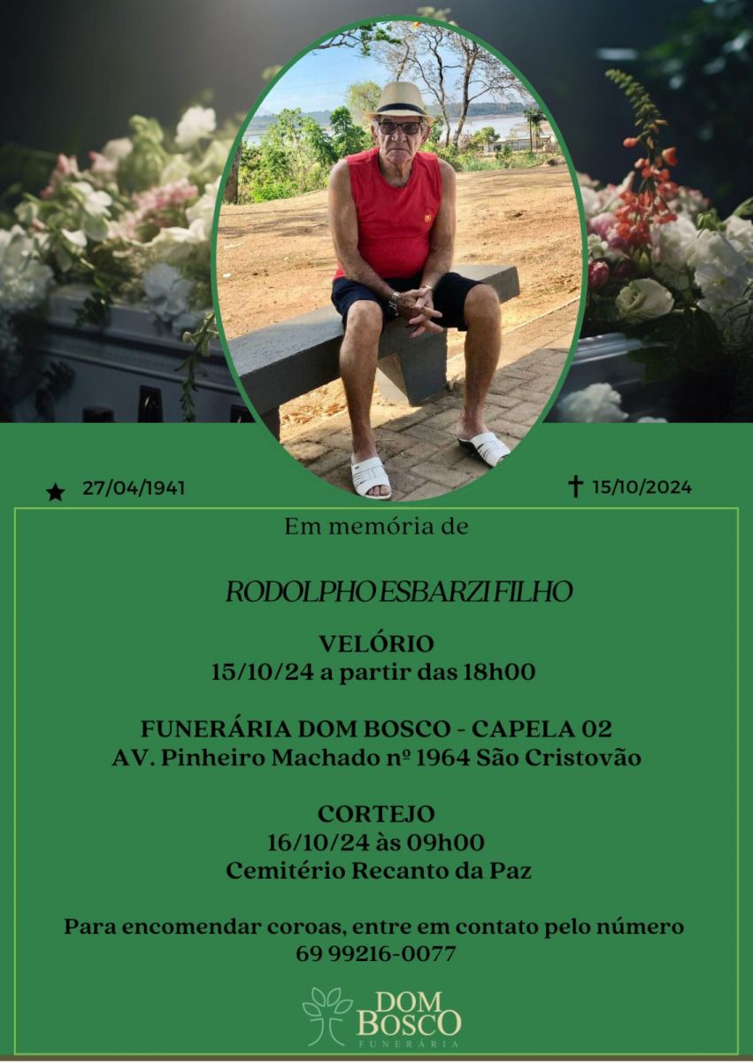 Morreu nesta terça-feira (15) Rodolpho Esbarzi Filho, aos 83 anos de idade. Carinhosamente apelidado de ‘Tio Nino’, Rodolpho foi fundador do Jeep Clube de Porto Velho (RO).