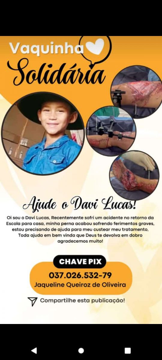 Davi Lucas, morador de Corumbiara, passou por cirurgias na perna e precisa de doações para dar continuidade a sua recuperação