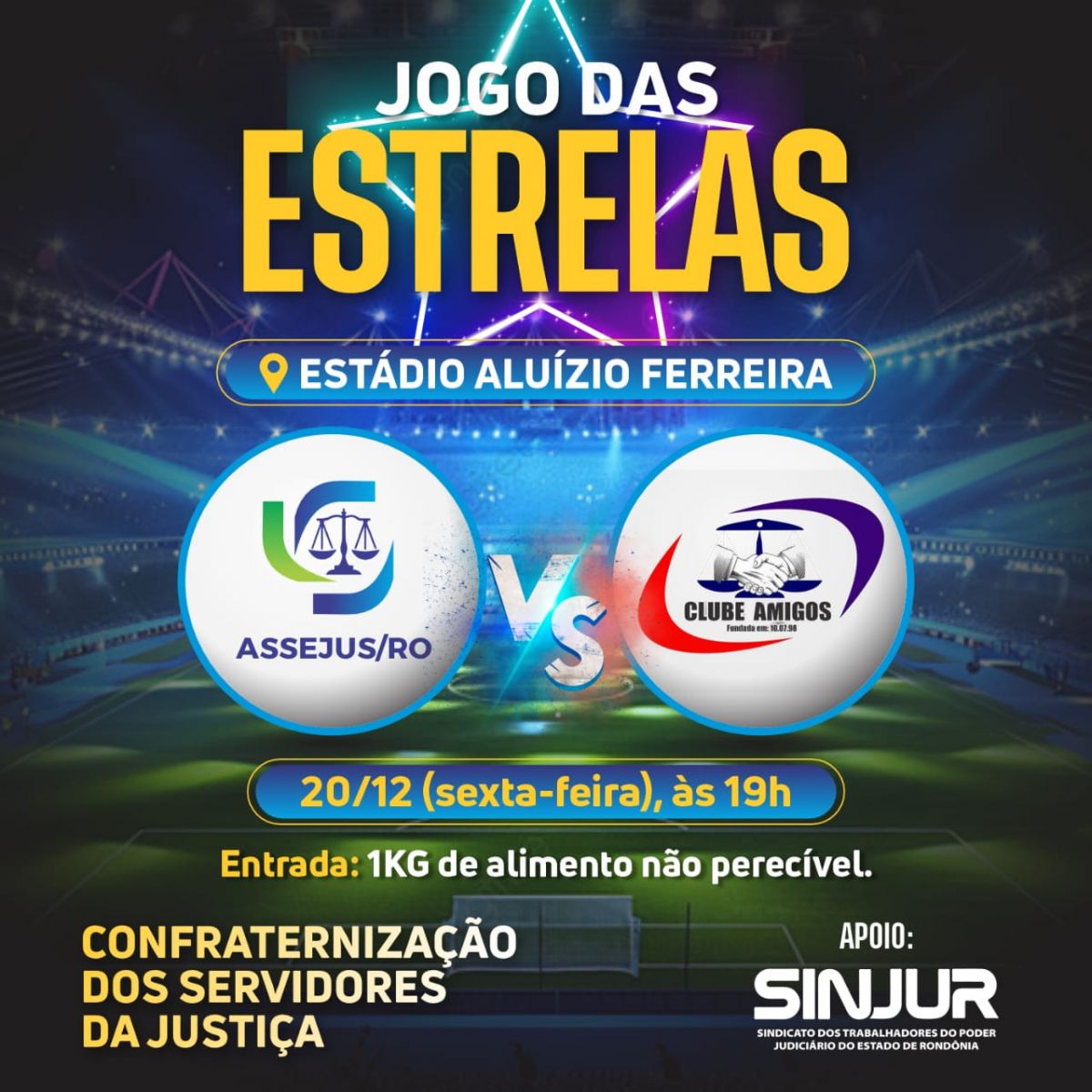 No dia 20 de dezembro de 2024, às 19h, o Estádio Aluízio Ferreira, em Porto Velho, será palco de um evento esportivo inédito: o “Jogo das Estrelas”, organizado pelos servidores públicos dos órgãos de justiça de Rondônia.