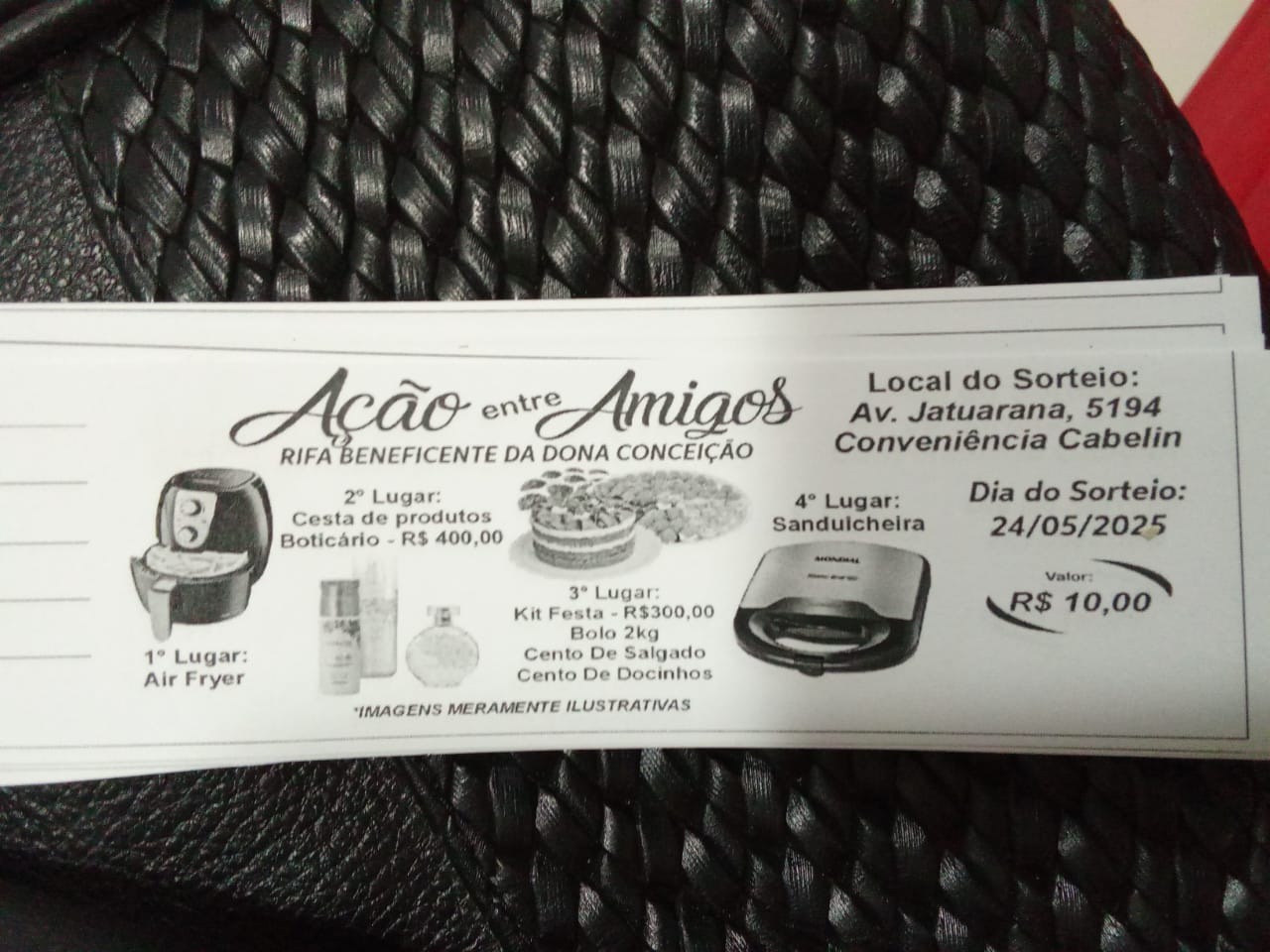 FOTO: Rifa oferta quatro prêmios e pode ser adquirida por WhatsApp. Reprodução de arquivo pessoal.