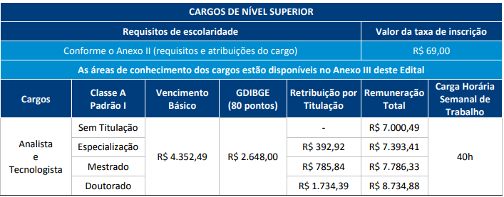• Analista e Tecnologista (exceto Análise de Sistemas/Desenvolvimento de Sistemas e Tecnologista – Área de Conhecimento de Estatística)