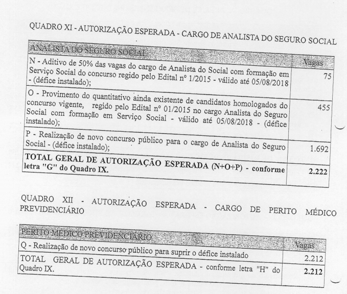 De acordo com o INSS, o documento serve para ratificar “a urgência na recomposição continuada do quadro permanente de pessoal do Instituto Nacional do Seguro Social. mediante a ampliação do número de vagas do concurso público autorizado – em 2015 -, e, posteriormente, a autorização para realização de novo concurso público”.