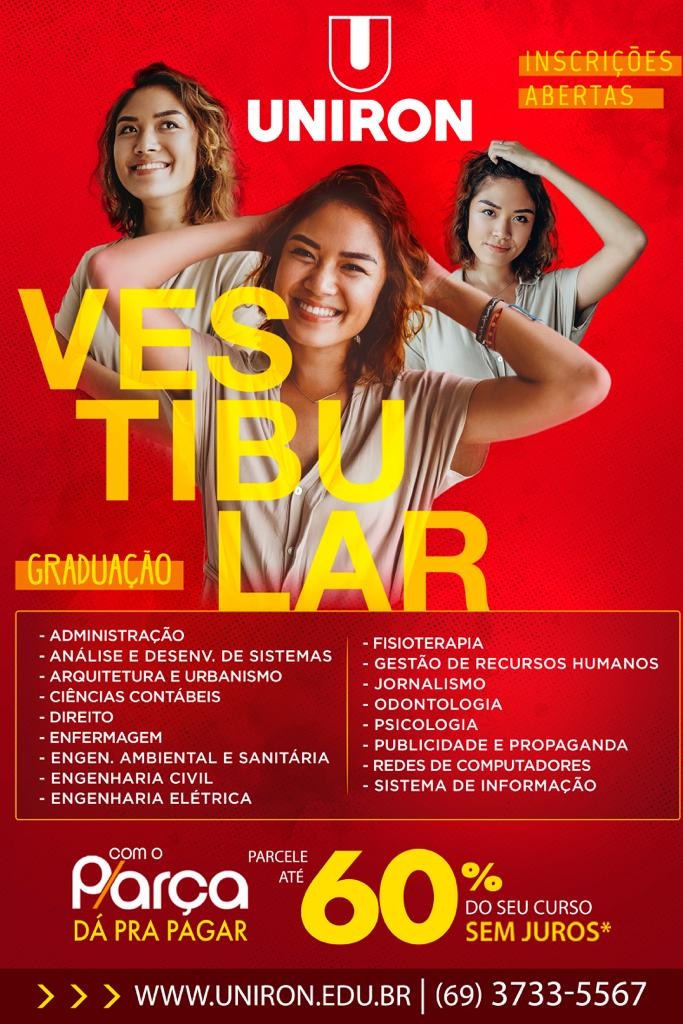 São mais de 15 cursos ofertados pela Uniron, em diversas áreas, como: Administração, Ciências Contábeis, Recursos Humanos, Direito, Jornalismo, Publicidade e Propaganda, Arquitetura e Urbanismo, Rede de Computadores, Sistemas de Informação, Análise e Desenvolvimento de Sistemas, Engenharia Civil, Elétricas e Ambiental e Sanitária, Enfermagem, Odontologia, Fisioterapia e Psicologia. Ufa! Tem muita coisa para você aqui.