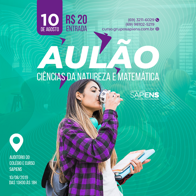 No dia 10 de agosto, a partir das 14h, será realizado o Aulão de Matemática e Ciências da Natureza para alunos que estão em preparação para o Enem 2019. Os ingressos são limitados e já estão sendo vendidos.