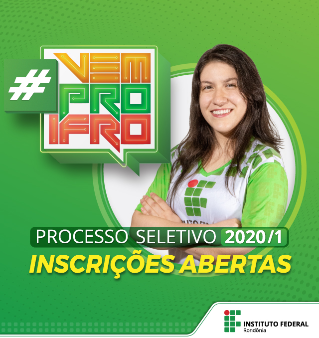 O Instituto Federal de Educação, Ciência e Tecnologia de Rondônia (IFRO) está com inscrições abertas para o Processo Seletivo 2020/1. São ofertadas 2.996 vagas em cursos técnicos e de graduação para ingresso em 2020, nos municípios de Ariquemes, Cacoal, Colorado do Oeste, Guajará-Mirim, Jaru, Ji-Paraná, Porto Velho, São Miguel do Guaporé e Vilhena. As inscrições podem ser realizadas até 23h59 do dia 17 de novembro de 2019.