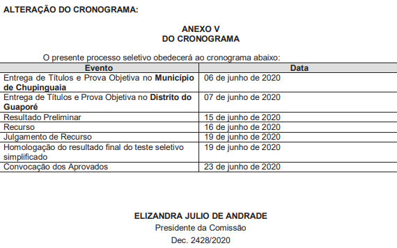 Conforme o documento de retificação (retomada das atividades), veja o novo cronograma abaixo: