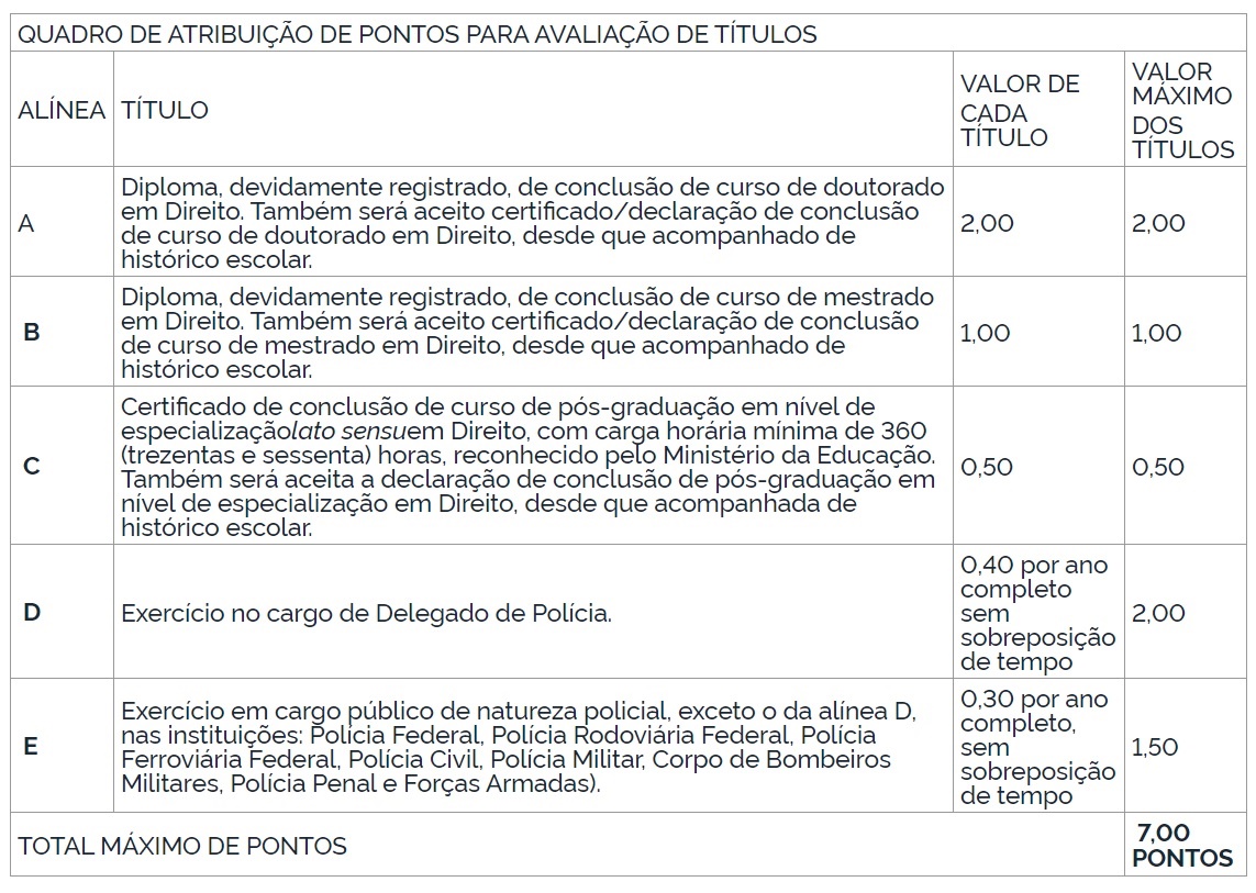 Já os candidatos a delegado terão 120 questões para responder na prova objetiva, três questões dissertativas, prova oral e de títulos. Todos ainda serão submetidos a exame de aptidão física, avaliação médica e psicológica, além do curso de formação.