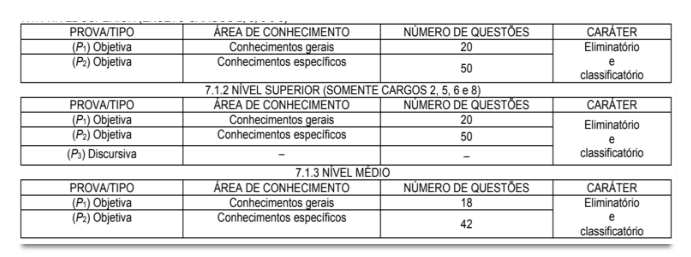 Os candidatos serão avaliados por meio de prova objetiva provas objetivas, de caráter eliminatório e classificatório, para todos os cargos;