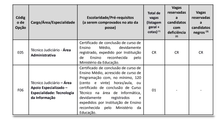Técnico Judiciário – área Apoio Especializado – Tecnologia da Informação – 1 vaga