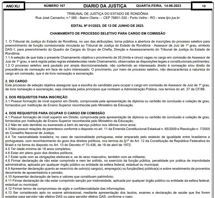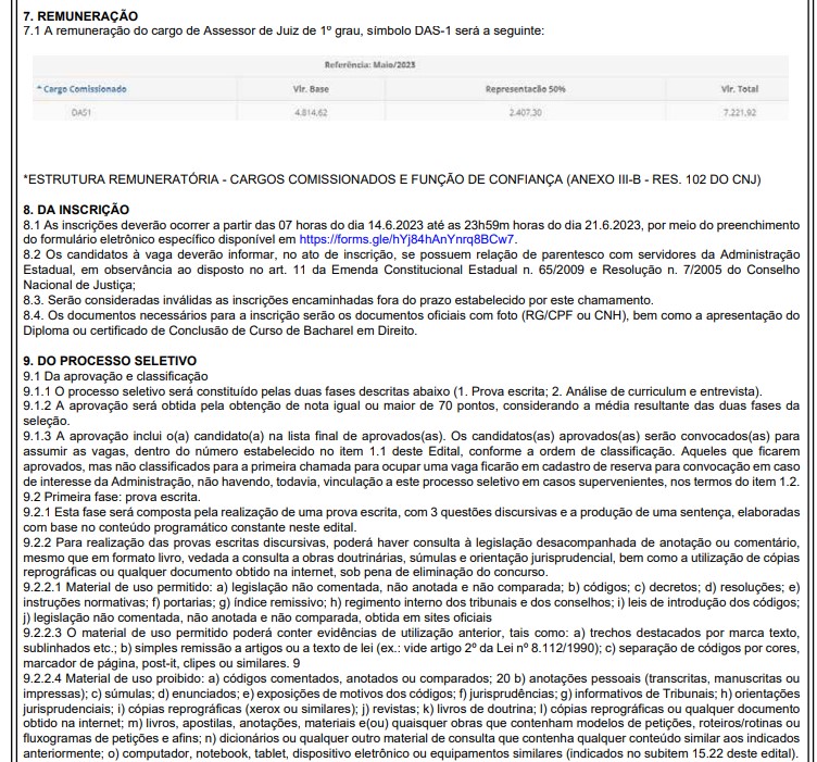 Para se inscrever é necessário possuir nível superior em Direito, comprovada pela apresentação de diploma ou certidão de conclusão e colação de grau