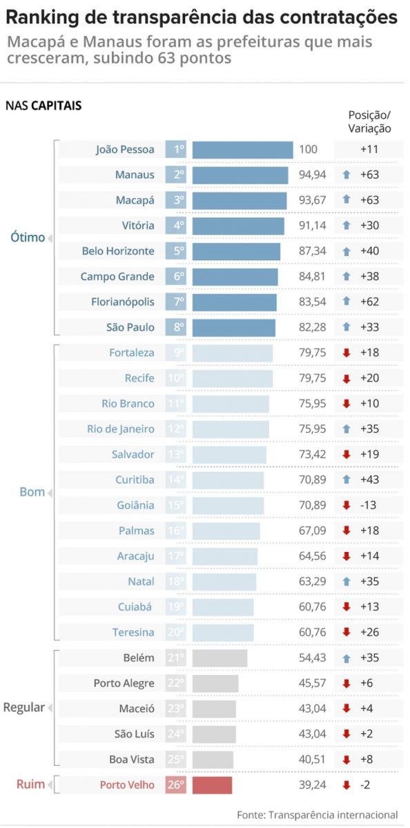 Uma análise da Transparência Internacional realizada nos sites, redes sociais e portais de transparência das prefeituras que integram as 27 capitais do Estado Brasileiro, colocou a gestão do prefeito Hildon Chaves (PSDB) como a última colocada no ranking das contratações emergenciais.