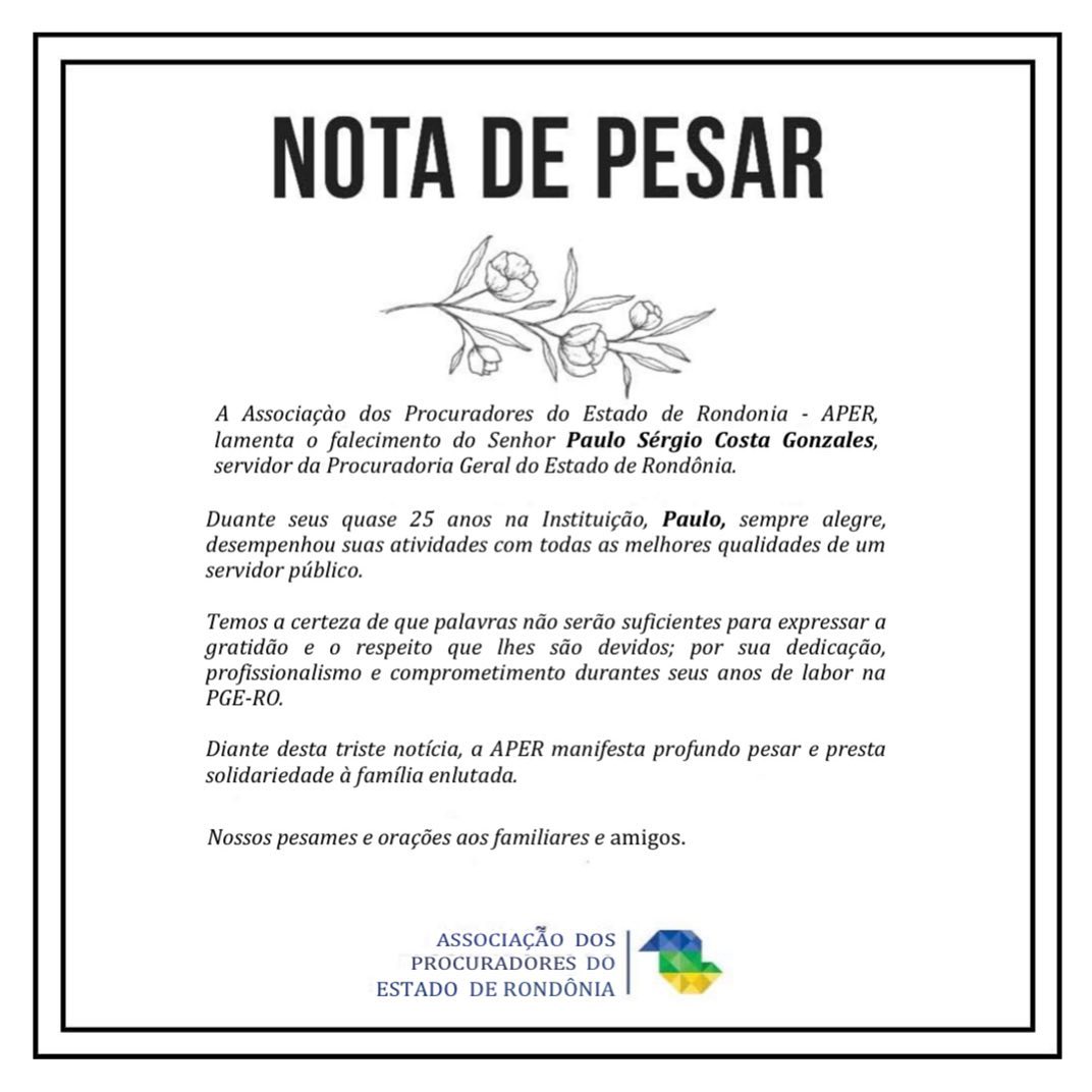A Associação dos Procuradores do Estado emitiu uma nota de pesar nesta segunda-feira (1) afirmando que Paulo sempre foi um servidor alegre e extremamente profissional.