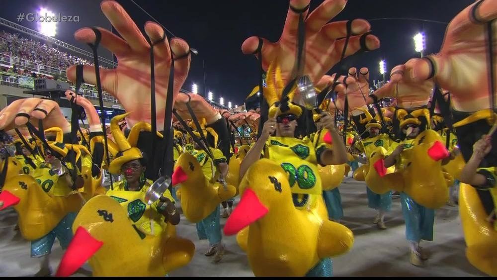 Com o enredo “Meu Deus, meu Deus, está extinta a escravidão?”, sobre os 130 anos da Lei Áurea, a escola trouxe o tema para o presente no último setor do desfile, mostrando com muita ironia que a escravidão permanece até hoje, mas de forma diferente.