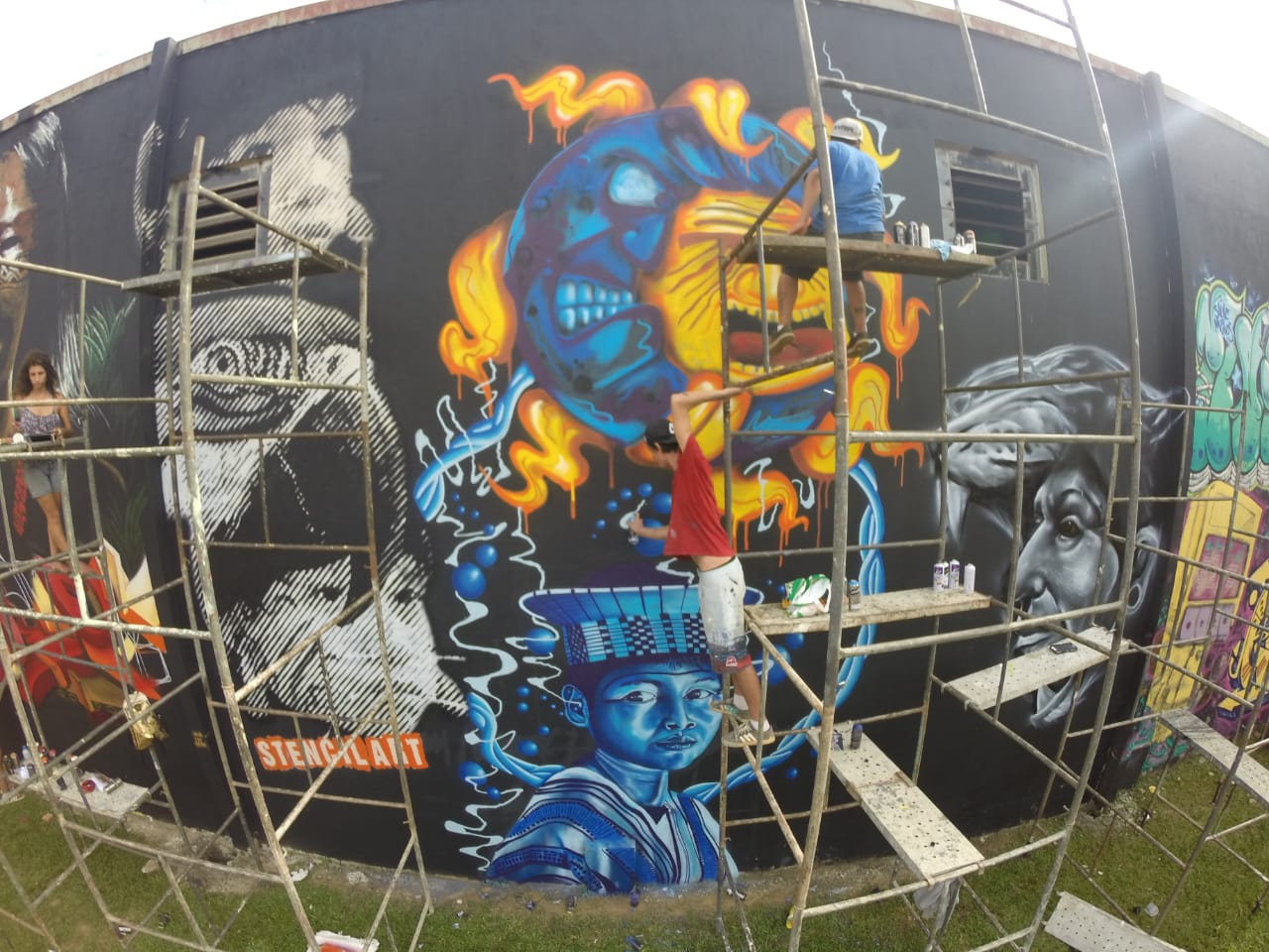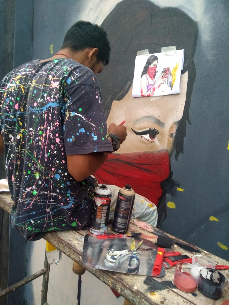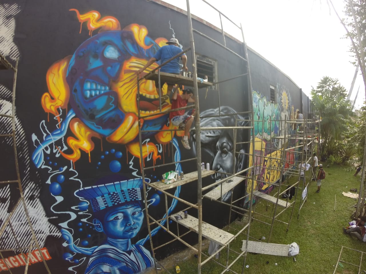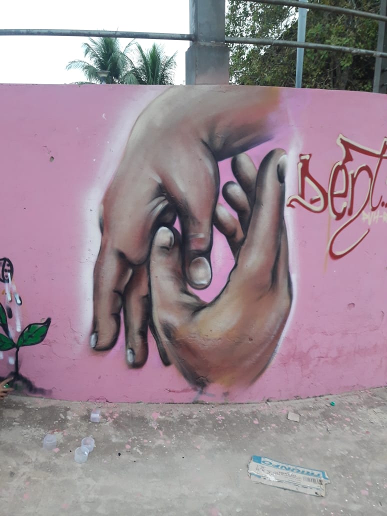 Os três grafiteiros de Porto Velho são Leonardo França (LeoGraffiti), Elias Santos (Rabsk) e Leandro Moraes (Dent ).