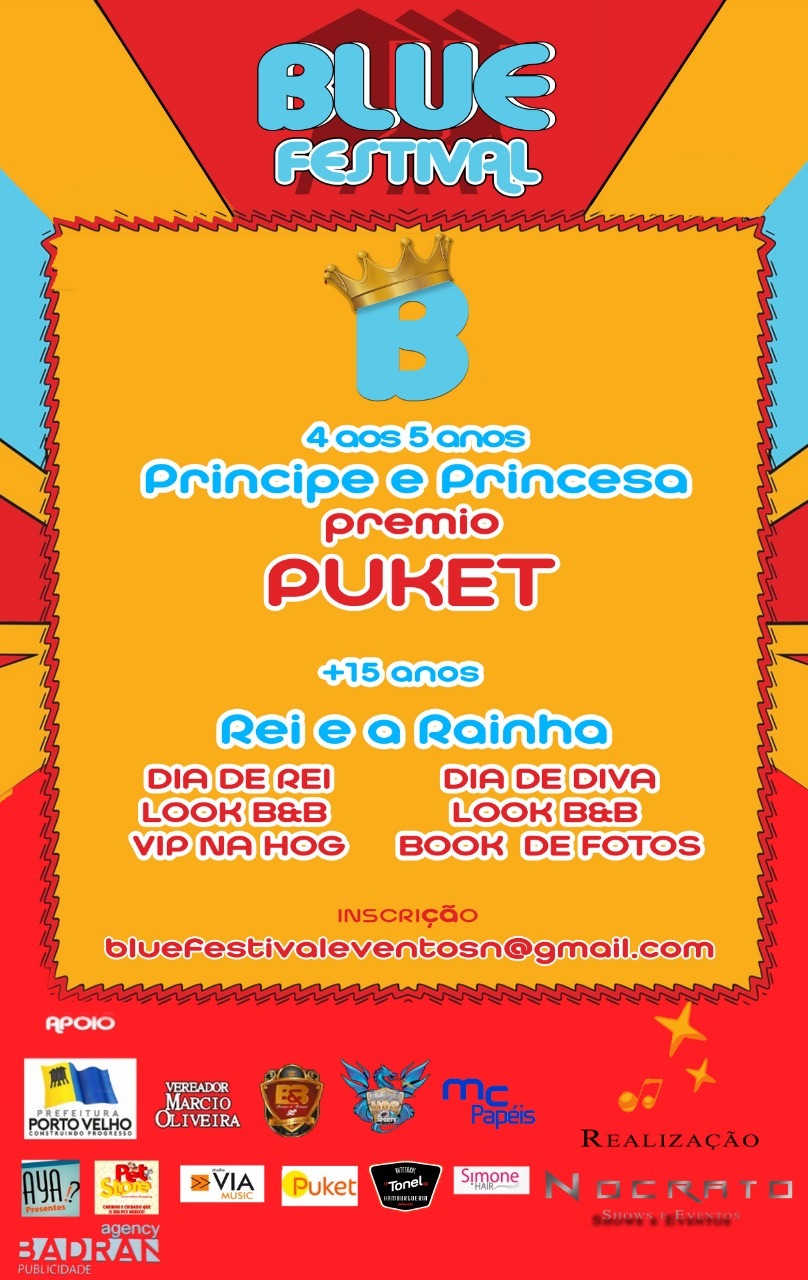 A cidade de Porto Velho terá o 1º Festival Cultural chamado “Blue Festival”, hoje e amanhã (1 e 2 de setembro), a partir das 14h, na Praça do Contorno, localizada na rua do Contorno, Conjunto Marechal Rondon. Para os amantes da cultura, o evento oferece uma programação variada de músicas, desfiles, gincanas, cinemas e premiações. A entrada será 1kg de alimento não perecível.