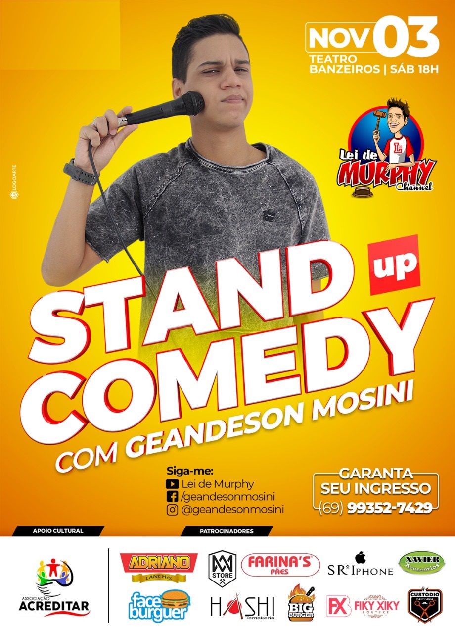 Para assistir, garante seu convite pelo fone 69 99352-7429. Para conhecer o trabalho do humorista, acesse e se inscreva no canal: : https://www.youtube.com/leidemurphychannel. O Teatro Banzeiros está situado a Rua José do Patrocínio, 110, centro de Porto Velho, próximo a Praça das Três Caixas D’água.