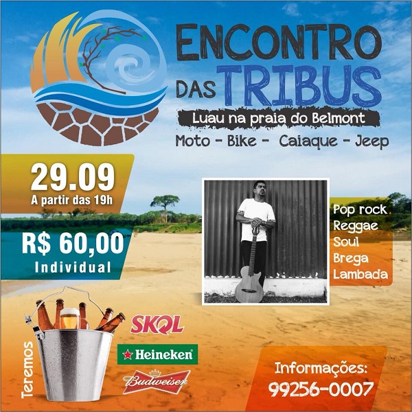 A Amazônia Adventure e parceiros realizarão nesse sábado dia 29/SET o “I Encontro das Tribus com encerramento na Praia do Belmont”. A concentração e saída será as 16h na Praça da Estrada de Ferro Madeira-Mamore onde a Turma do Caiaque descerá pro rio Madeira, Turma da Bike, Quadri, Moto e Jipe irão fazer trajeto por terra chegando às 17h30 no Belmont.