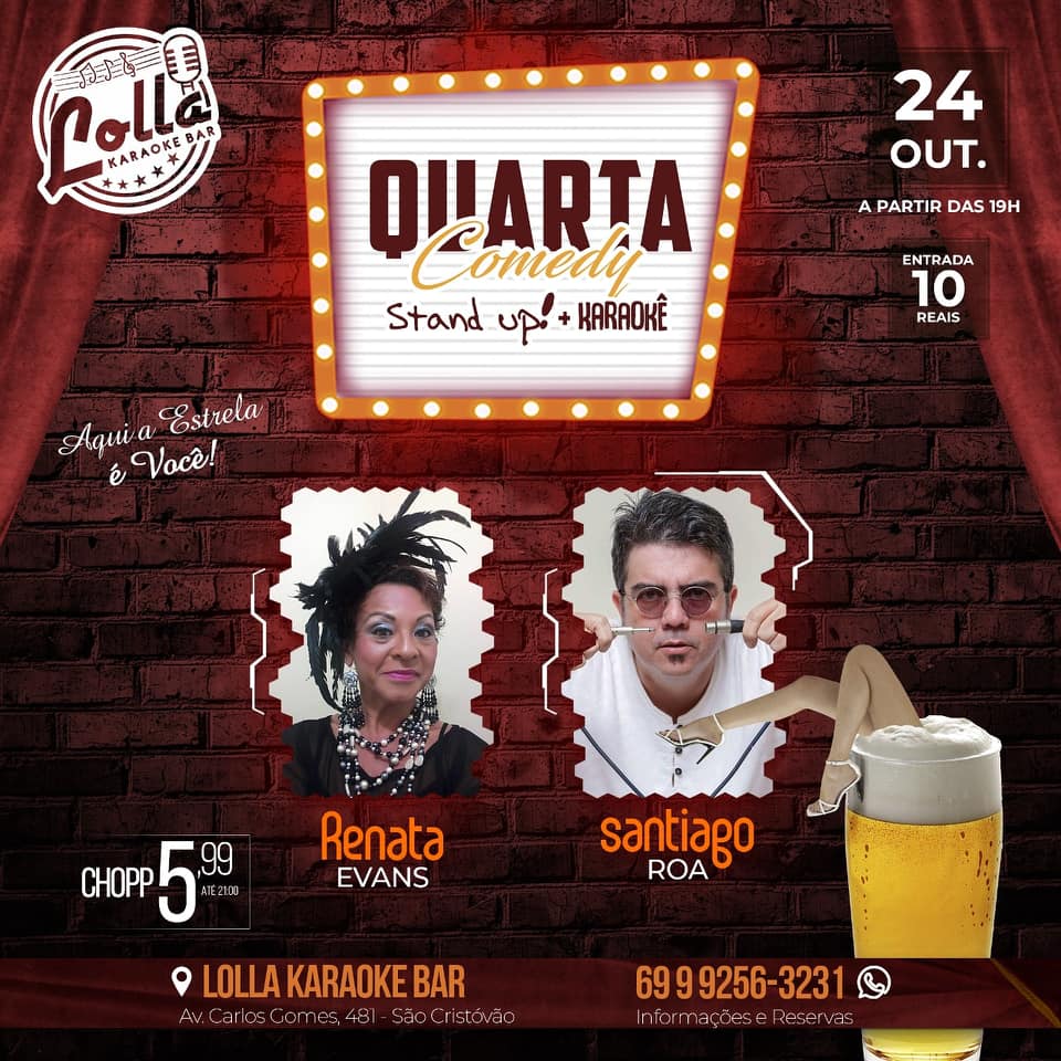 Hoje, Stand Up Comedy. Local: llolla Karaoque Bar. Carlos Gomes, 481. Entrada: R$10,00. Horário: 21 horas. Aconselhado para maiores de 16 anos.