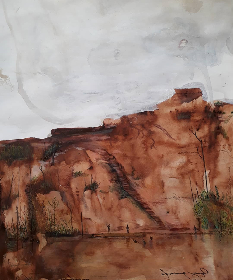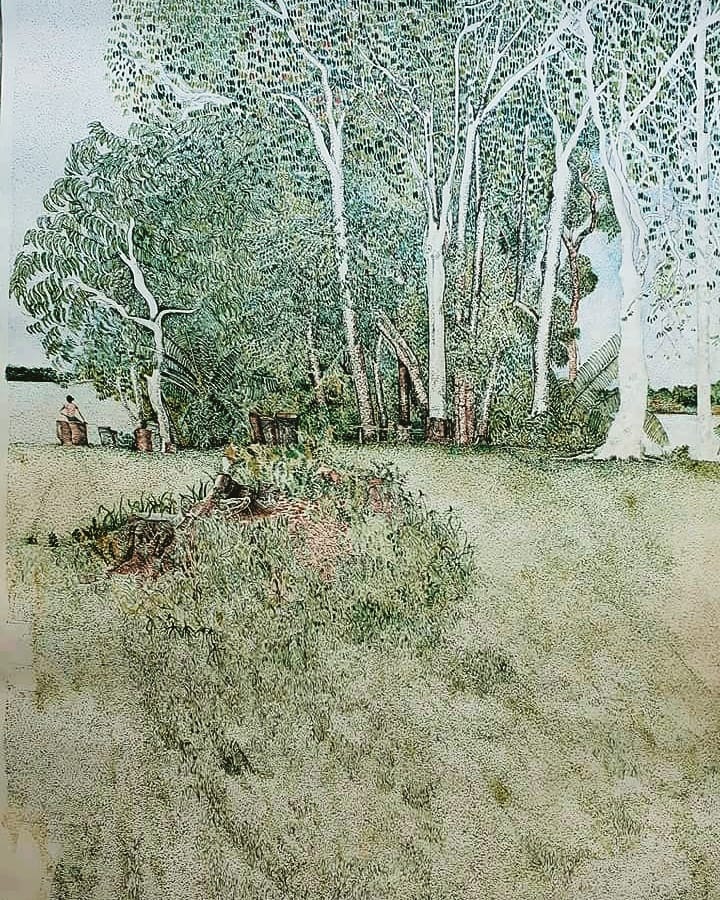É justamente a natureza que o artista plástico usa como base em seu processo de criação, retratando de forma minuciosa, por meio de traços, as paisagens e recantos pitorescos que encontra pela frente.