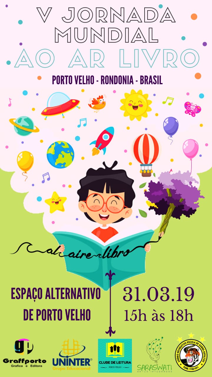 O Clube de Leitura Porto Velho e o projeto Leituras do Porto, foram convidados a participar da V Jornada Mundial Ao Ar Livro (AL AIRE LIBRO), ação de incentivo ao prazer da leitura desenvolvida pelax Saraswati – Artes Integradas. A atividade, que teve início em fevereiro de 2015 na Colômbia, é literalmente, um convite a viajar no mundo dos livros e já conta com a participação de muitos países.