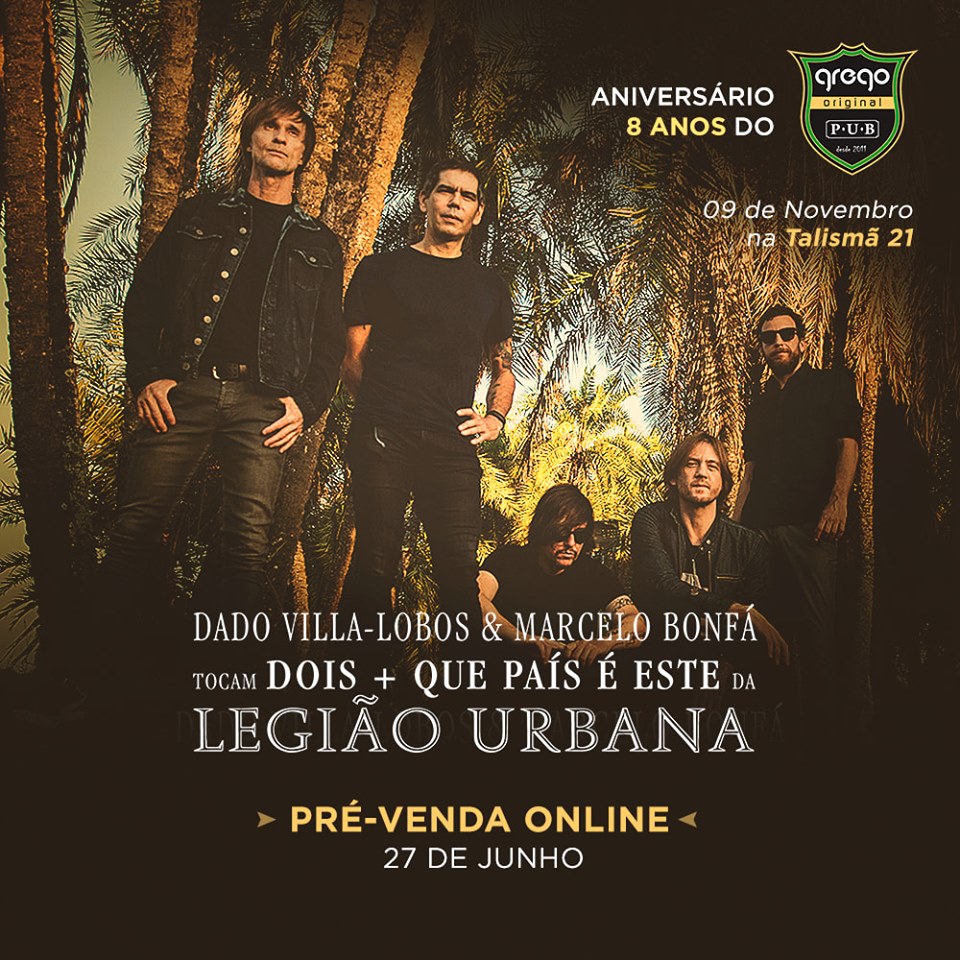 No dia 09 de novembro vamos comemorar juntos o 8º aniversário do GREGO ORIGINAL e os 30 anos de lançamento dos discos DOIS + QUE PAÍS É ESTE da banda Legião Urbana.