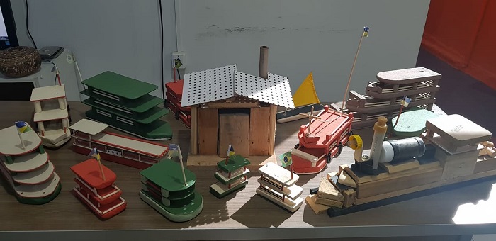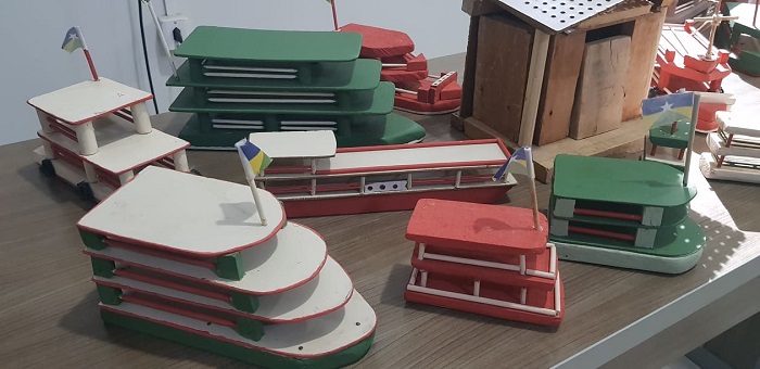 As peças que ele está comercializando são réplicas de barcos usados pelos ribeirinhos, do Complexo da Estrada de Ferro Madeira-Mamoré, casa das comunidades ribeirinhas, entre outros. "Trabalho resgatando a cultura e a história rondoniense por meio do artesanato",ddeclara o arttista, que executa essa atividade através do projeto Ensinart.