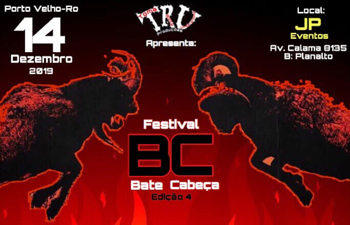 A edição do Festival Bate Cabeça 2019 acontece no espeço JP Eventos na avenida Calama, bairro Planalto, em Porto Velho. Mais informações do evento através da página do Facebook (CLIQUE AQUI).