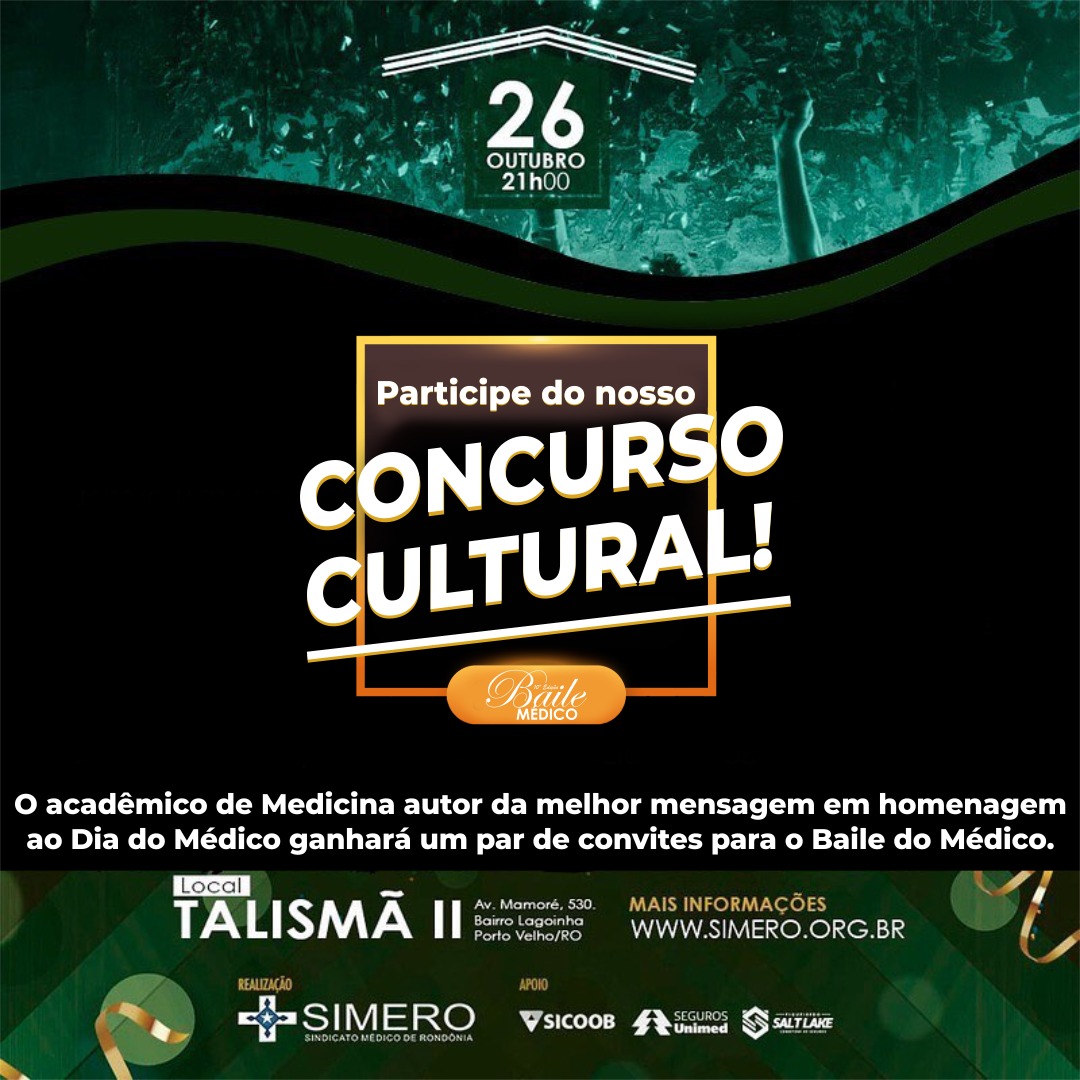 O criador da melhor mensagem ganha um par de convites para a 10ª edição do Baile do Médico do SIMERO que acontece no próximo sábado, dia 26, na Talismã 2