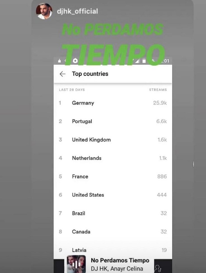 A música “No Perdamos Tiempo”, da jovem cantora rondoniense Anayr Celina, lançada no dia 28/03 no Youtube e nas principais plataformas digitais, está entre as mais tocada na Alemanha, Portugal e Reino Unido. No Brasil, ela está em sétimo lugar. A música é no estilo reggaeton e funk.