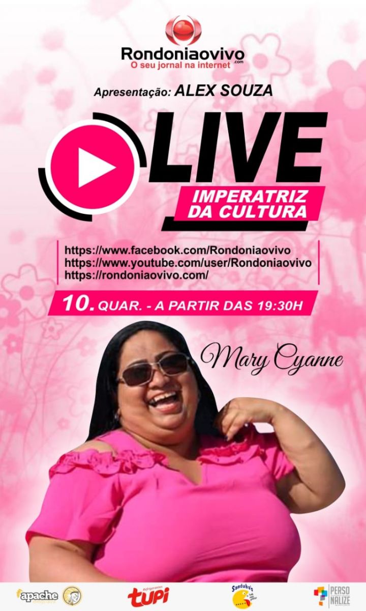 Nesta quarta-feira (10) às 19h30 acontece a live solidária em homenagem à imperatriz da cultura portovelhense Mary Ciane, que faleceu vítima de COVID-19 no último dia 10 de maio.