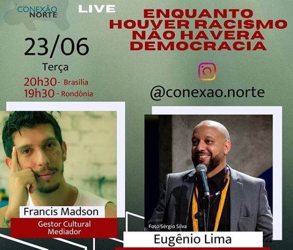 O pesquisador, Dj e ator Eugênio Lima, de Porto Velho, abordará o tema “Enquanto houver racismo não haverá democracia” nesta terça-feira,22, durante live do Conexão Norte, às 20h30 (horário de Brasília), com transmissão pelo instagram @conexão.norte.