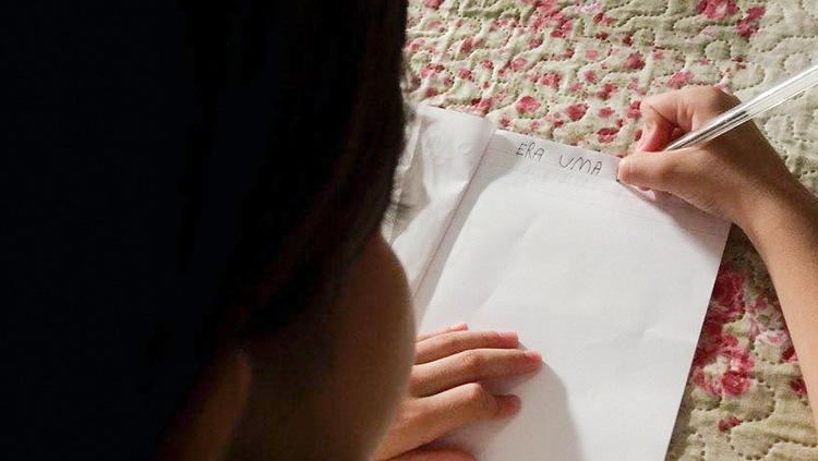 Peça para criança esboçar em uma folha de papel a história que será contada no livro. Auxilie-a durante o processo de criação do enredo.