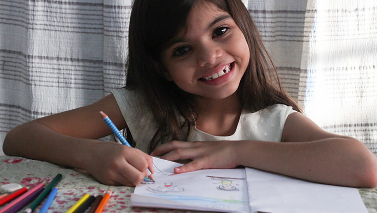 Agora, oriente a criança a ilustrar a história, desenhando as personagens e os cenários. Usem o lápis de cor!