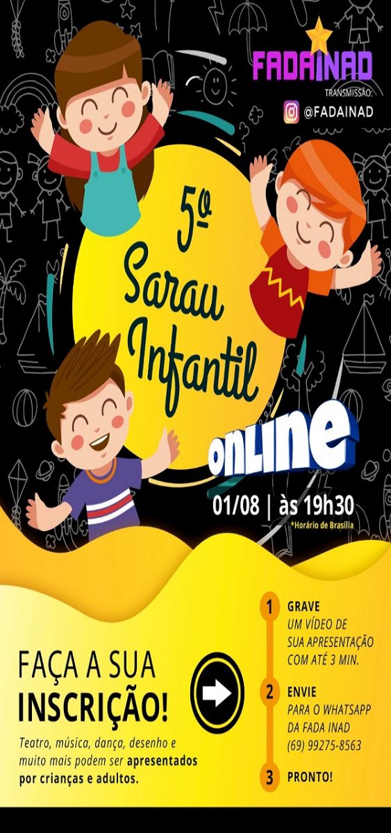 Para encerrar o evento, a Fada Inad realizará a 5ª edição do Sarau Infantil, que será transmitido online no Instagram (@fadainad) e na plataforma do evento, no dia 01 de agosto, às 19h30 (Horário de Brasília).